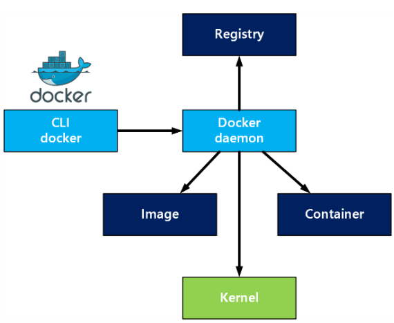 docker는 아래 그림처럼 Docker daemon 을 구동하고 여기에서 모든 작업이 이루어지며 사용자는 docker client 명령어를 사용해서 도커 데몬을 제어했습니다.