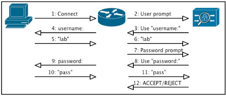 두 시스템 모두 NAD (Network Access Device)의 요청으로 시작이 된다. NAD는 TACACS+/RADIUS 서버에 Authentication (username &L password)을 요청하게 된다. 우선 NAD는 user name을 얻고 이를 server에 요청을 한다.