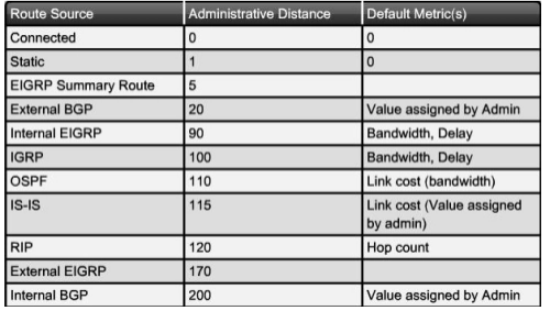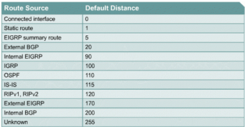 라우터에 다수의 라우팅 프로토콜을 사용하는 경우, 경로의 Administrative distance 값이 가장 적은 경로가 최적 경로로 산출