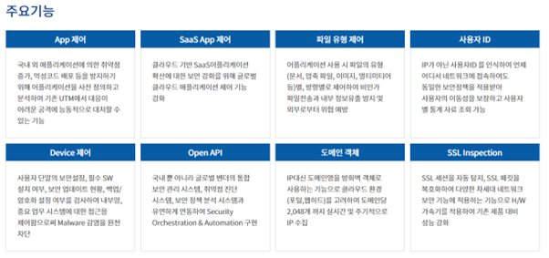 : NGF는 국내 최초의 네트워크 보안을 위한 차세대 방화벽이며, 유무선 IT 인프라 환경의 모든 위협 요소를 탐지, 차단하는 통합보안플랫폼을 제공