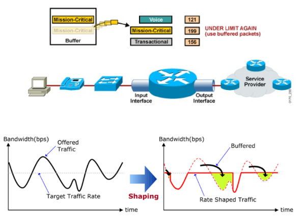 버퍼(메모리)에 패킷을 잠시 저장하여 대역폭 이하로 트래픽이 발생하는 시점에 버퍼링하였던 패킷을 보내는 방식
