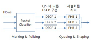 ▷ 설명이 구성된 경우, 패킷을 수신할 다음 디바이스가 분류 방법을 알 수 있도록 디바이스가 IP 헤더의 DS 필드(DSCP값)의 값을 설명합니다.